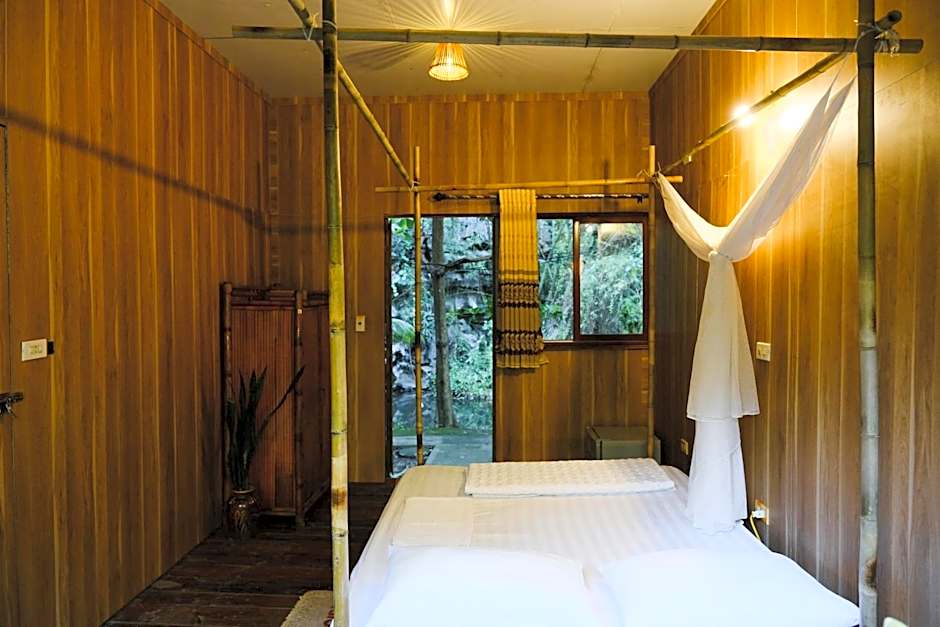 A range of lodging options is available, emphasizing bungalow-style spaces. The Honeymoon Bungalow (377 sqft) accommodates 2 adults and 1 child with a king-size bed. Larger setups include Bungalow, Mountain View (431 sqft), which can accommodate up to 9 adults and 4 children, and Bungalow, 2 King (431 sqft). Other configurations include Dormitory, River View and various Double Room options, offering a variety of layouts to suit different travel needs.